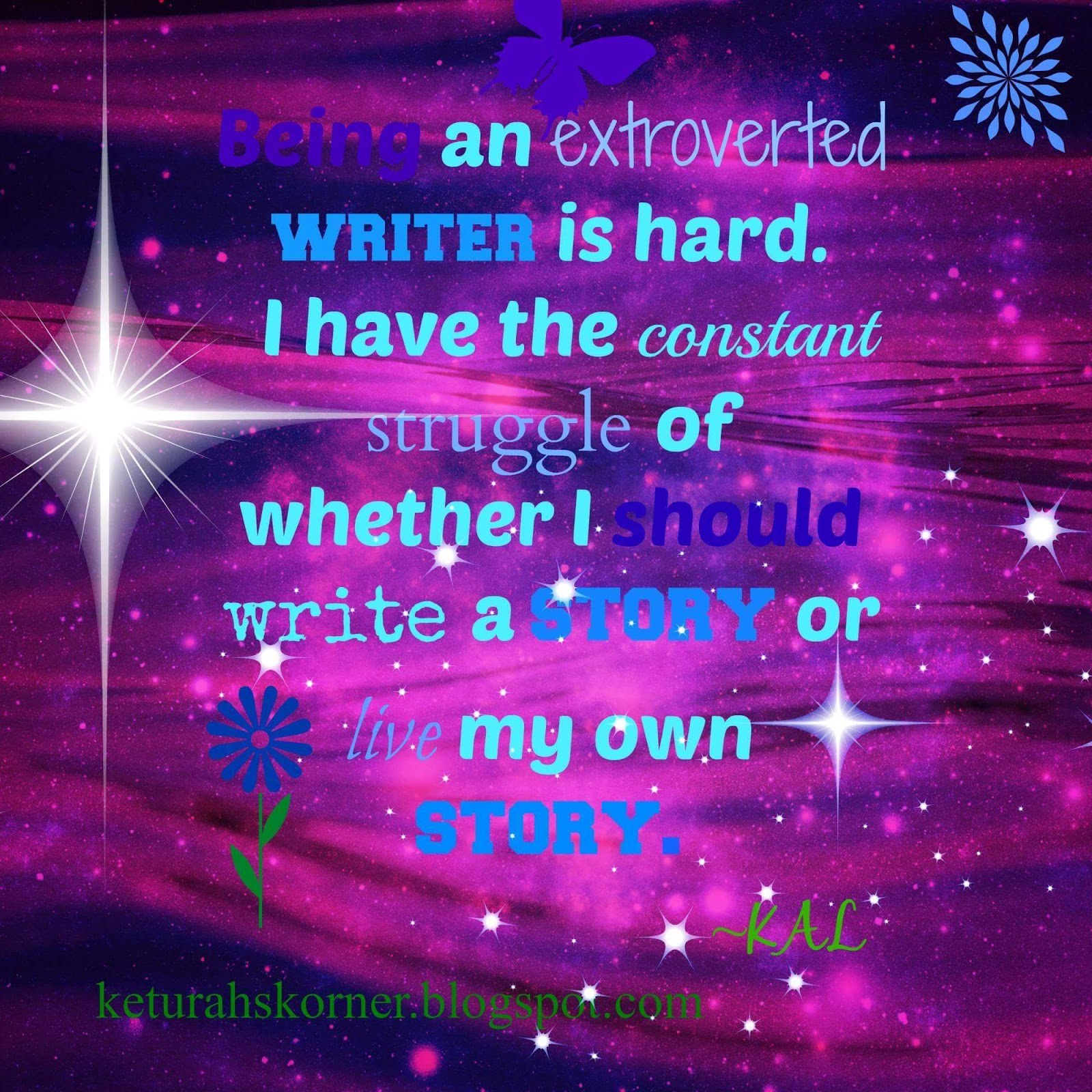 Hi! I’m just a crazy almost 20-year old writer – that loves to make people laugh most of all. Laughter and joy are necessities in life, I believe, but I still love it when my writing makes people cry, think, or change their mindset and the world around them.