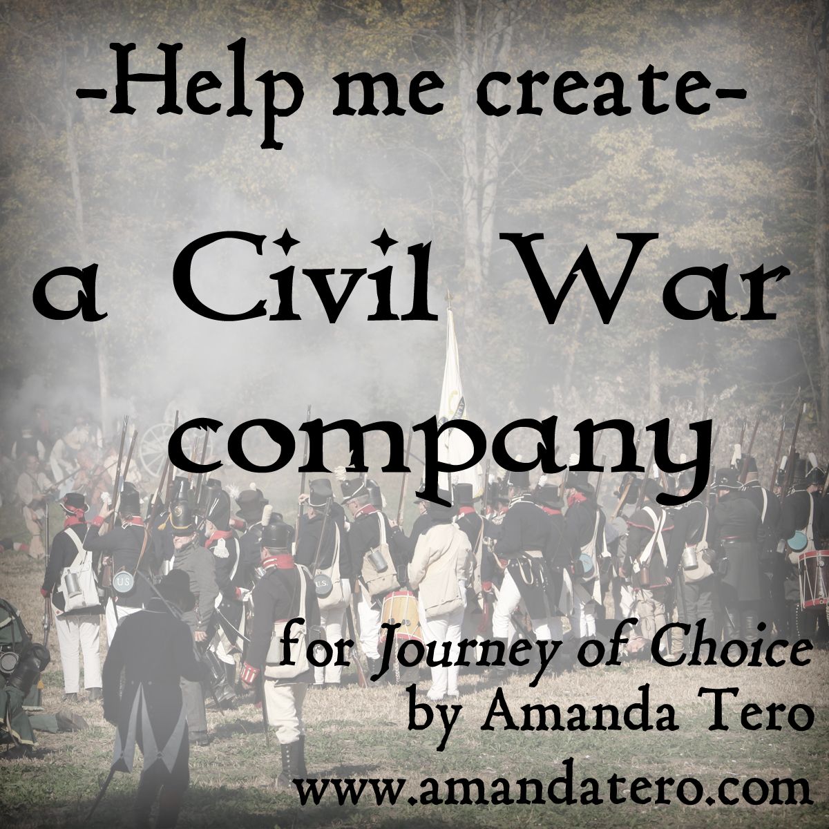I need help with something fun! I have decided that, for my Civil War story (aka, “Journey of Choice”), I will create my own company to be in the 18th Missouri regiment. This means I need 100 men (I probably won’t mention them all by name, but I need to know of them as an author, right?). And I have four. 😉 I feel very dry when it comes to thinking up SO many names, so I’m asking you: what are some Civil War-era names? First and last. Shoot away!!!
