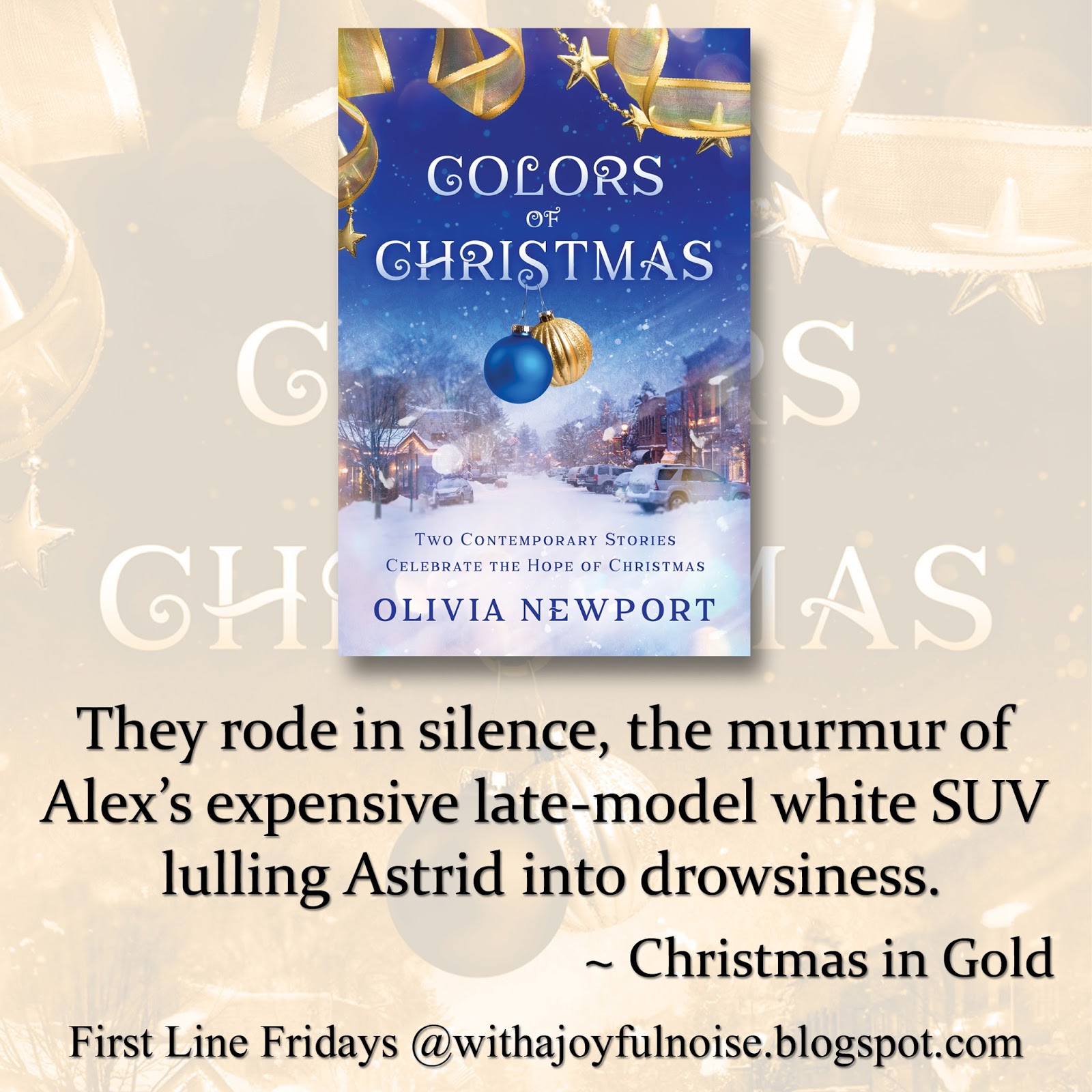 6. Christmas in Gold sounds really good!! It's so cool to hear that it's based off of a true story, too! I love it when true stories would make great books. I am going to share the first line of a short story I'm working on that will probably never get published 🙂 It's just one of those stories that you get really inspired to write but…life happens. We'll see. Anyway: 'On a wet, winter day, a lady could be seen hurrying along the streets of Paris, black feathered hat pulled low, head down, and tall black boots clicking along the brick road in her purposeful haste.' I have not read anything by Olivia Newton. These stories of hers sound really good, though!I've not been reading a lot this month…drawing/painting more than reading, doing homework, and writing my own stories a little bit. Therefore, I don't think I have read any new authors this month. Thanks for sharing these first lines, and I hope you have a great weekend!